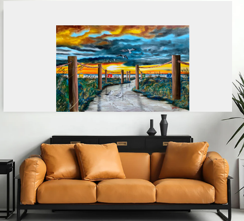 * Browse & Buy Original Works: Explore vivid coastal scenes, lifeguard stands, and ocean waves — each piece bringing warmth and joy to any space.